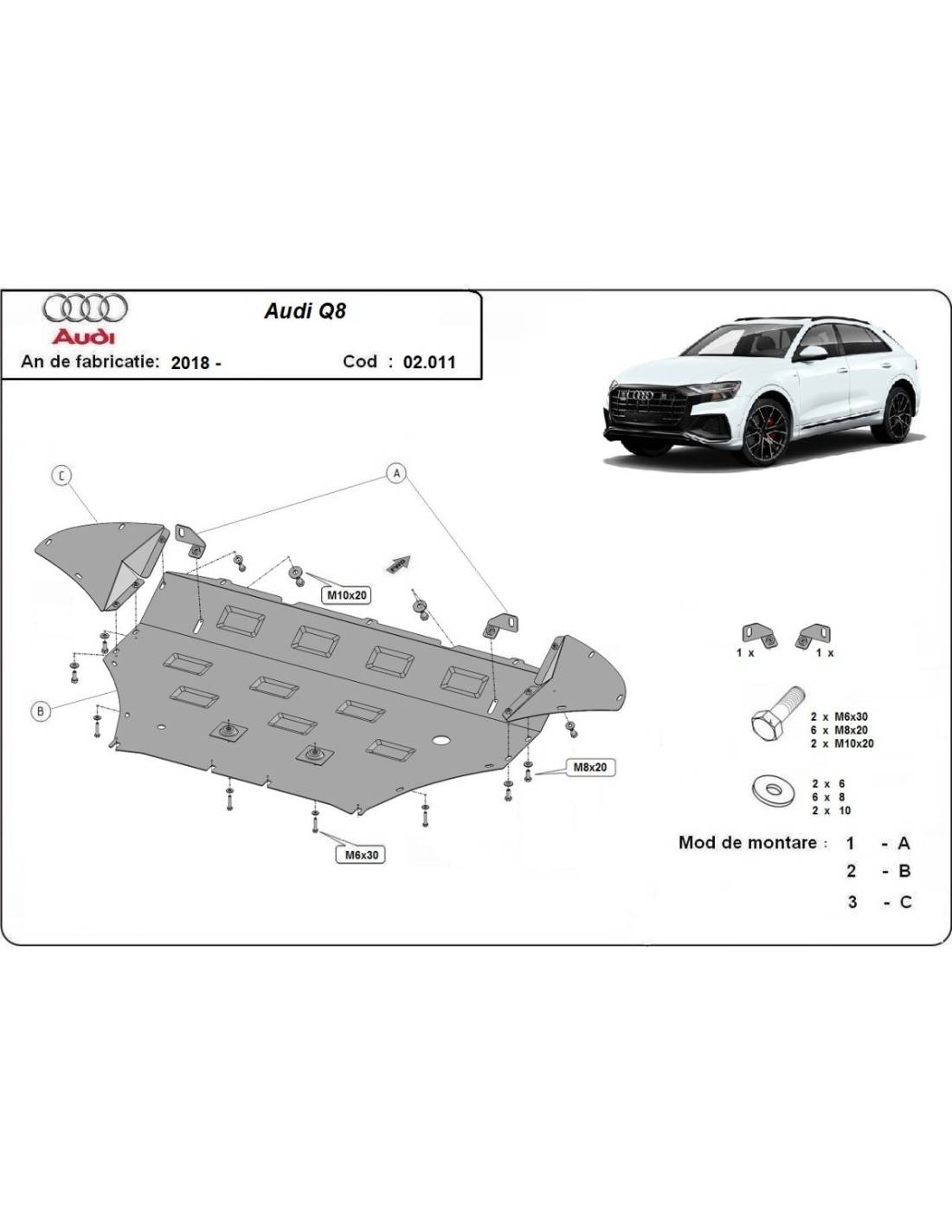 Cubre carter metalico Audi Q8 "02.011" (Desde 2018 hasta 2020)