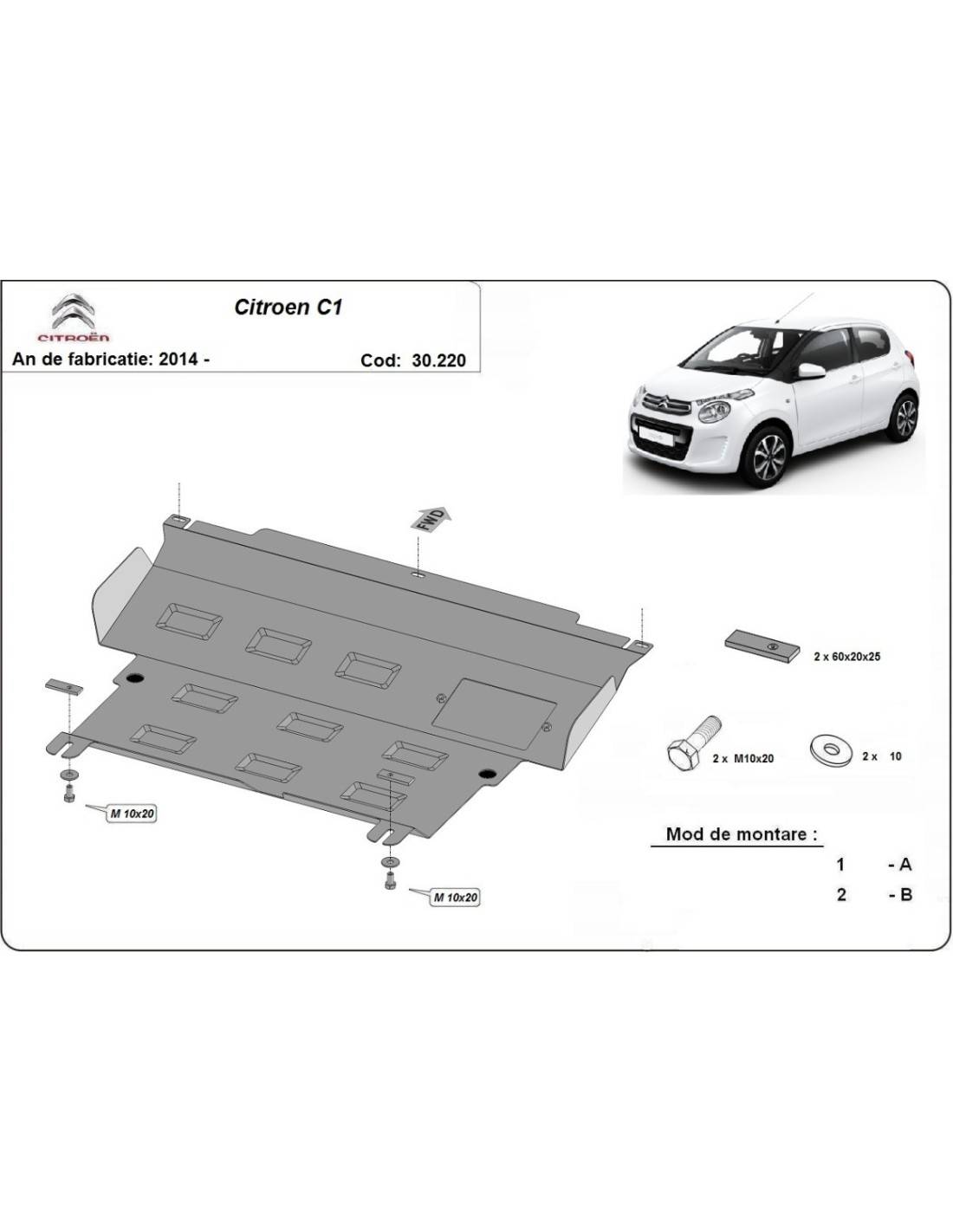 Cubre carter metalico Citroen C1 "30.220" (Desde 2014)