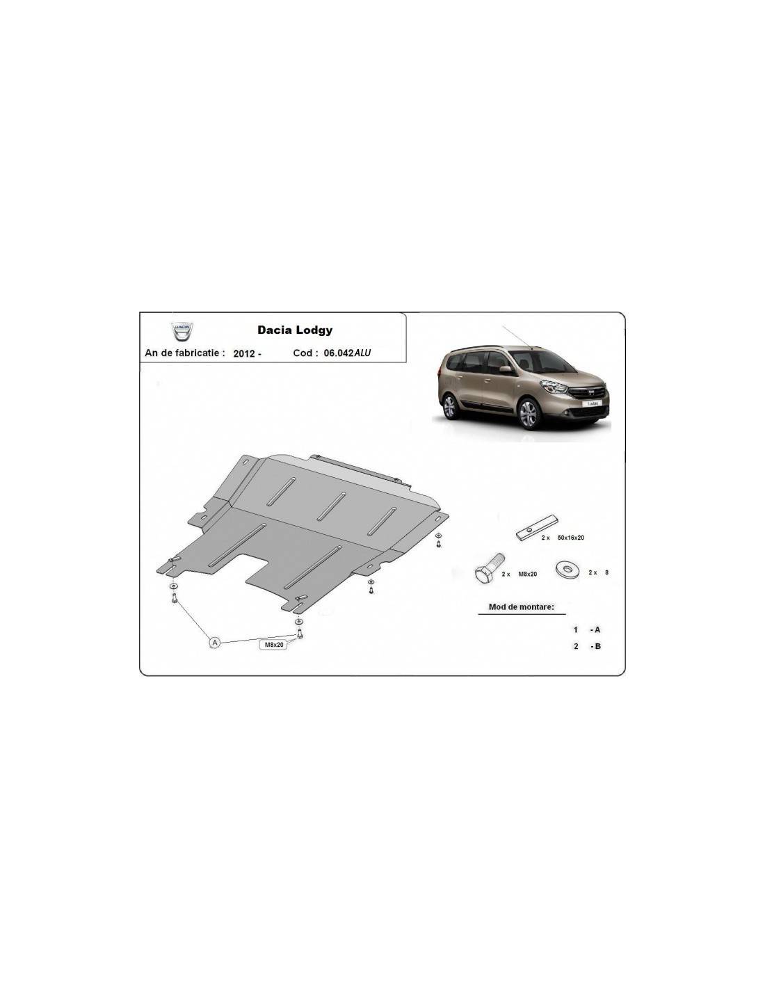 Cubre carter aluminio DACIA LODGY "06.042ALU" (Desde 2012 hasta 2022)