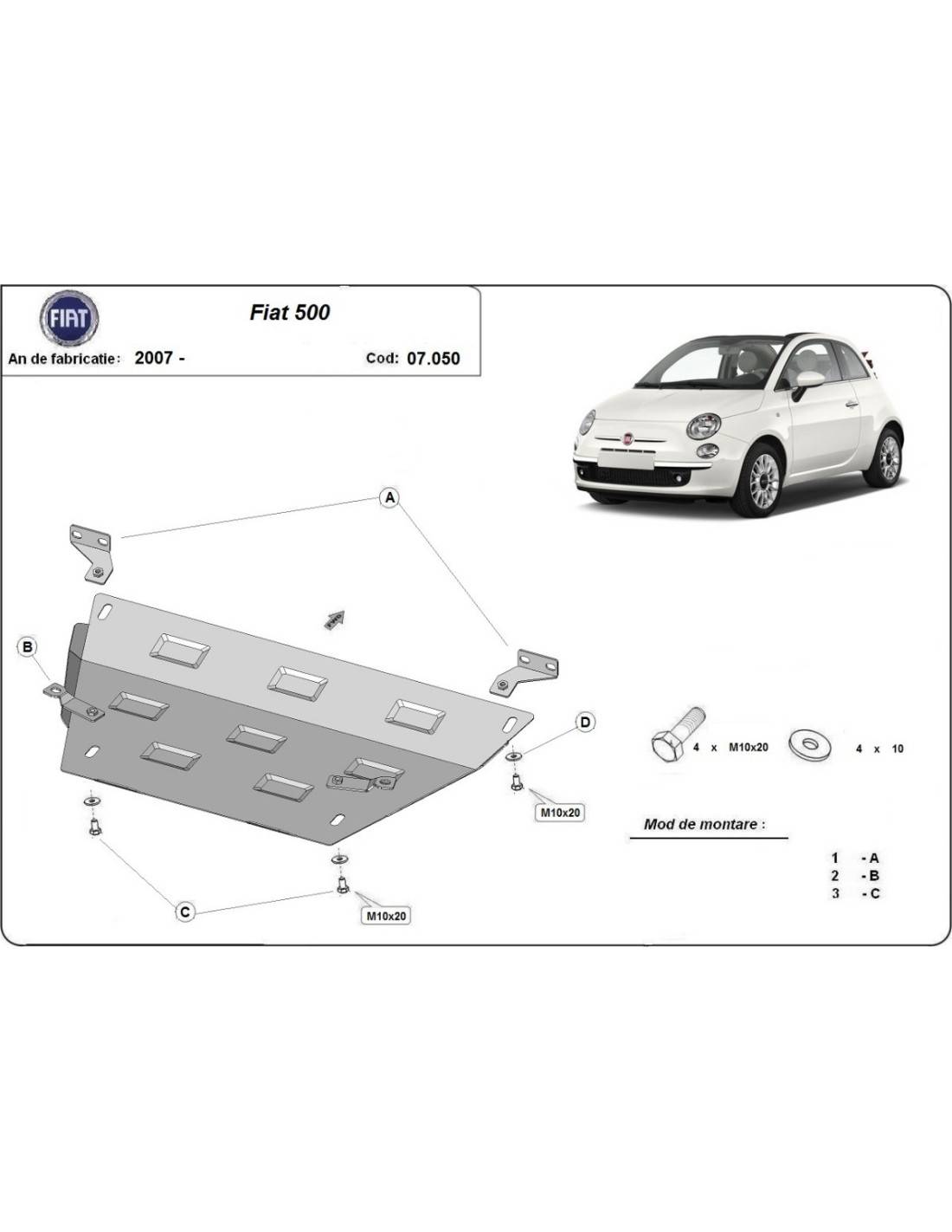 Cubre carter metalico Fiat 500 "07.050" (Desde 2007)