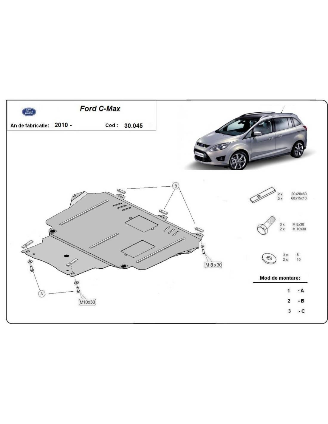 Cubre carter metalico Ford C - Max "30.044" (Desde 2010 hasta 2019)