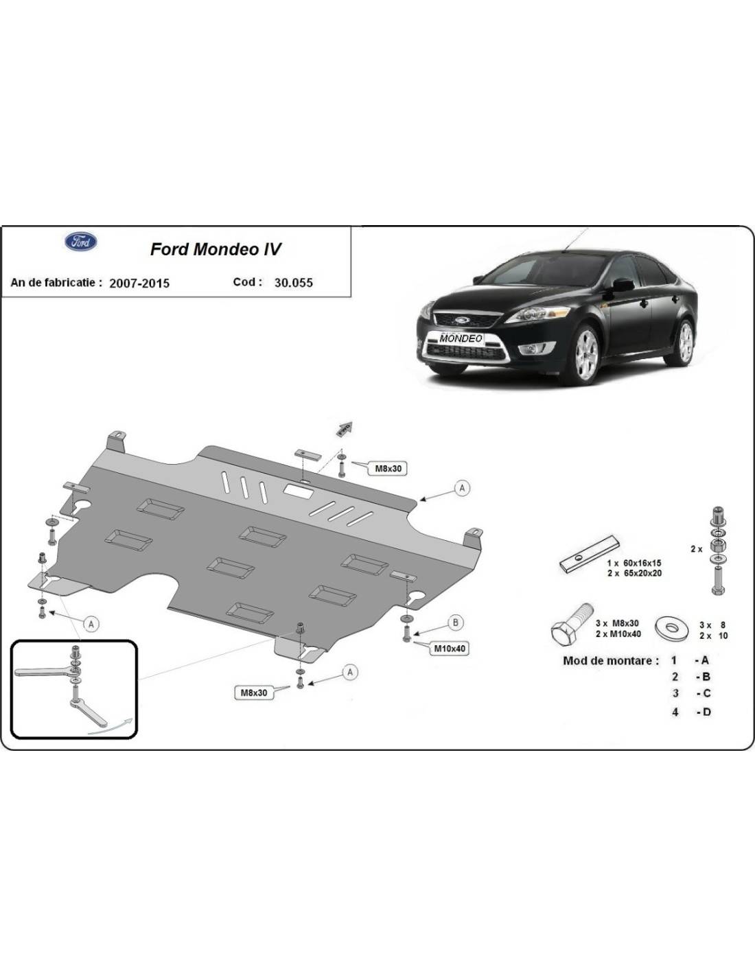 Cubre carter metalico Ford Mondeo 4 "30.055" (Desde 2007 hasta 2015)