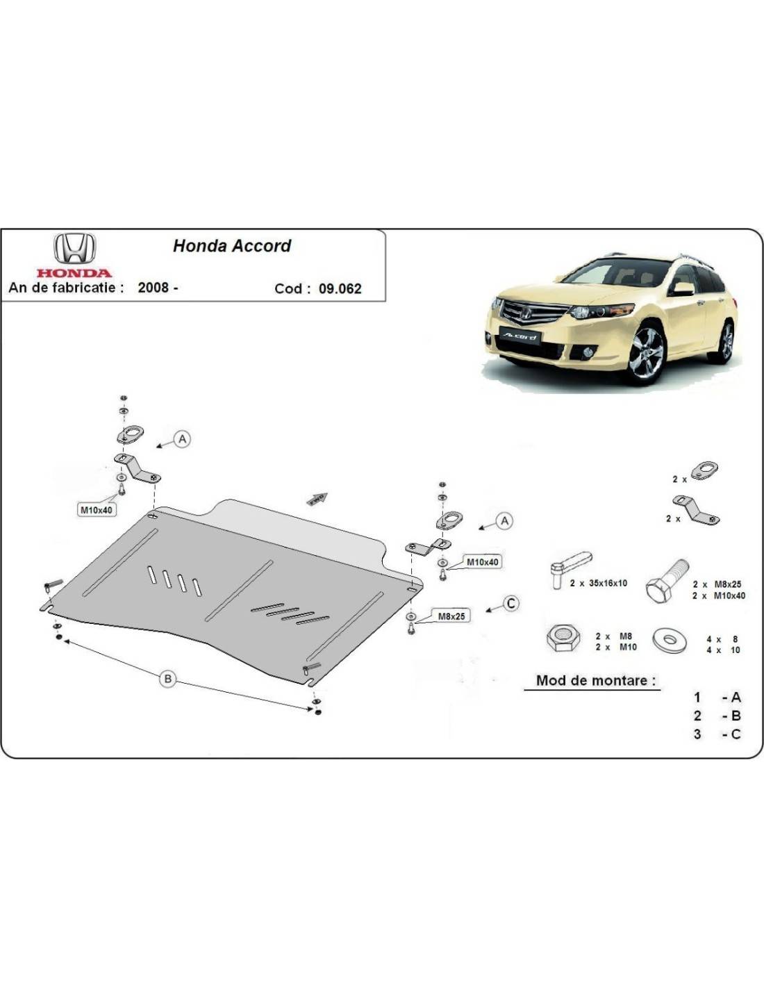 Cubre carter metalico Honda Accord "09.062" (Desde 2008)