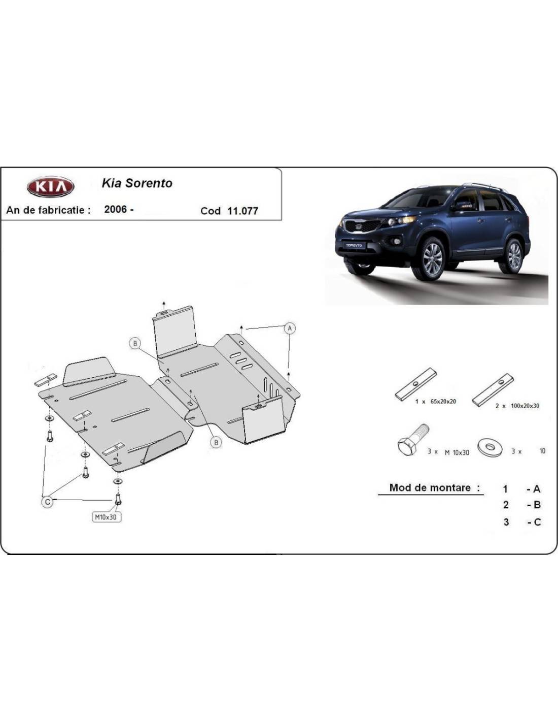Cubre carter metalico Kia Sorento "11.077" (Desde 2006 hasta 2009)