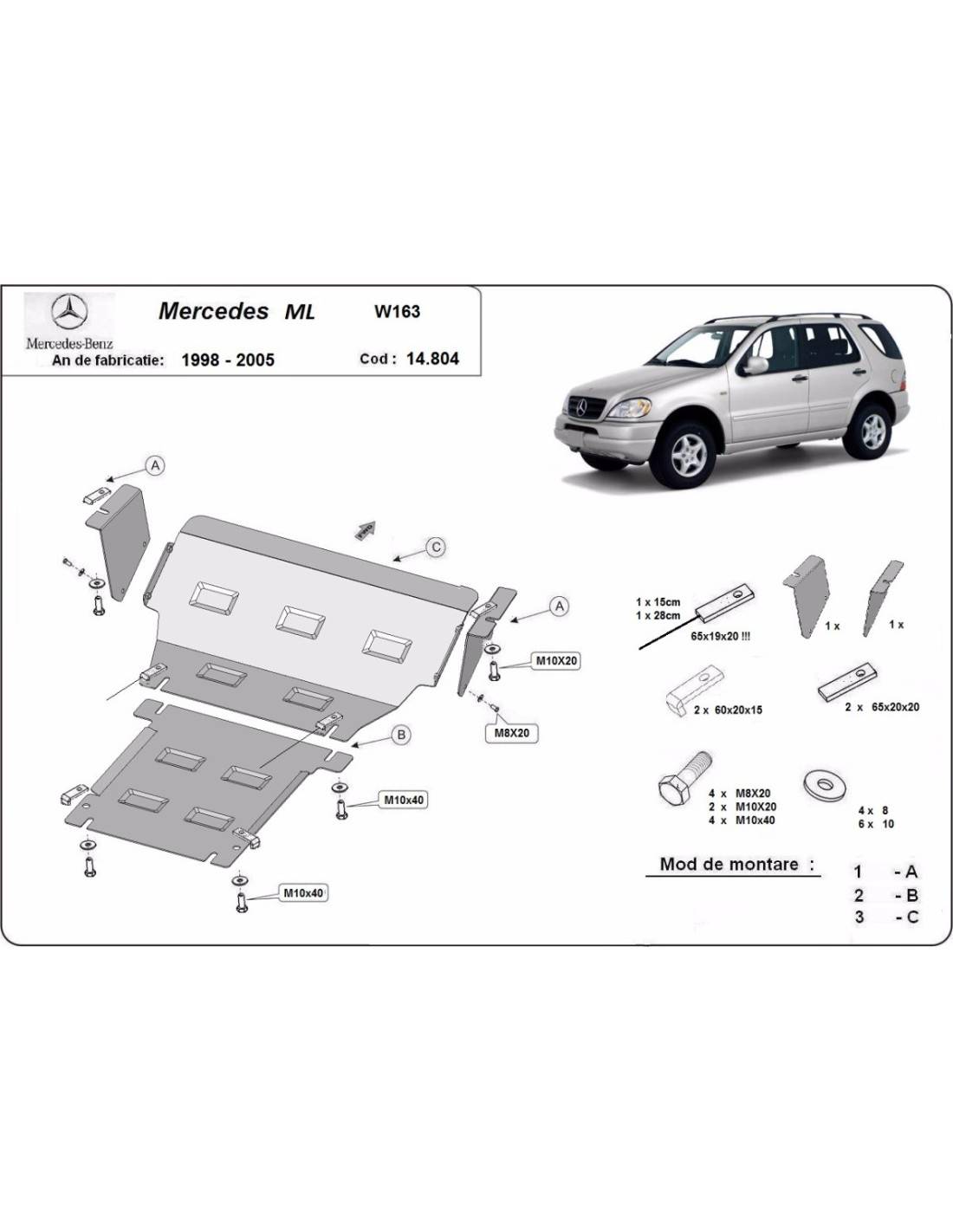 Cubre carter metalico Mercedes ML W163 "14.804" (Desde 1998 hasta 2005)