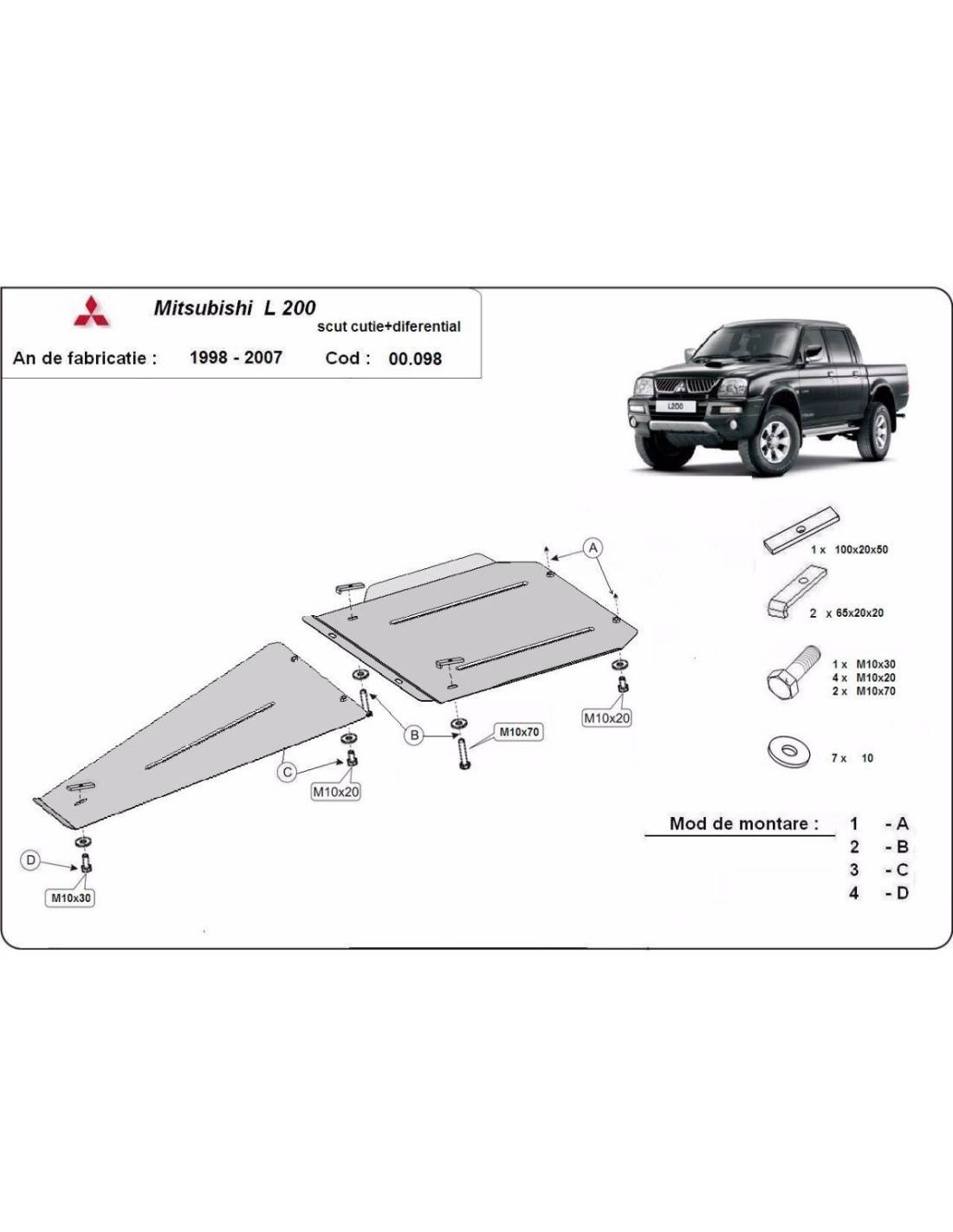 Protección de caja de cambios y diferencial Mitsubishi L 200 "00.098" (Desde 1998 hasta 2007)