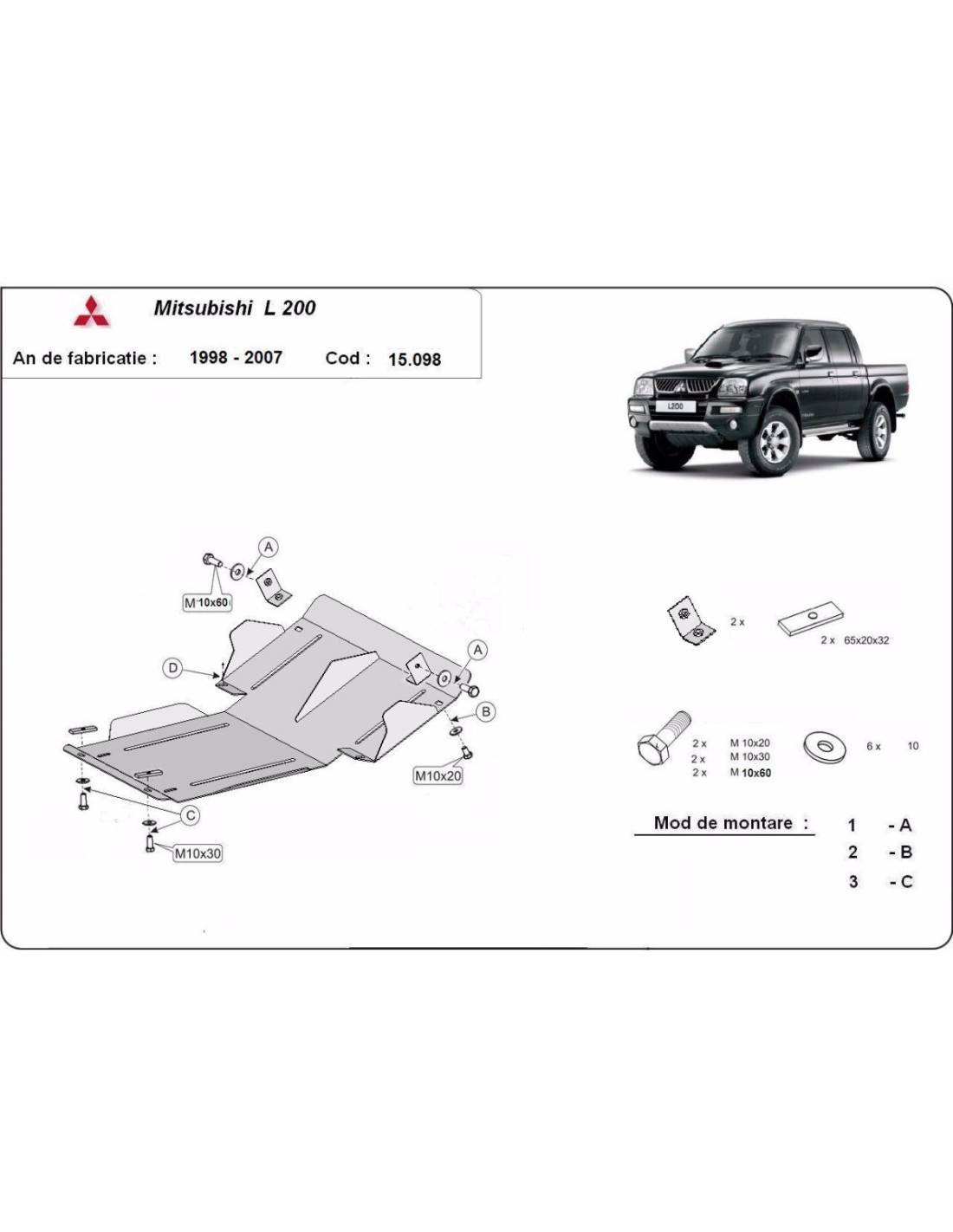 Cubre carter metalico Mitsubishi L200 "15.098" (Desde 1998 hasta 2007)