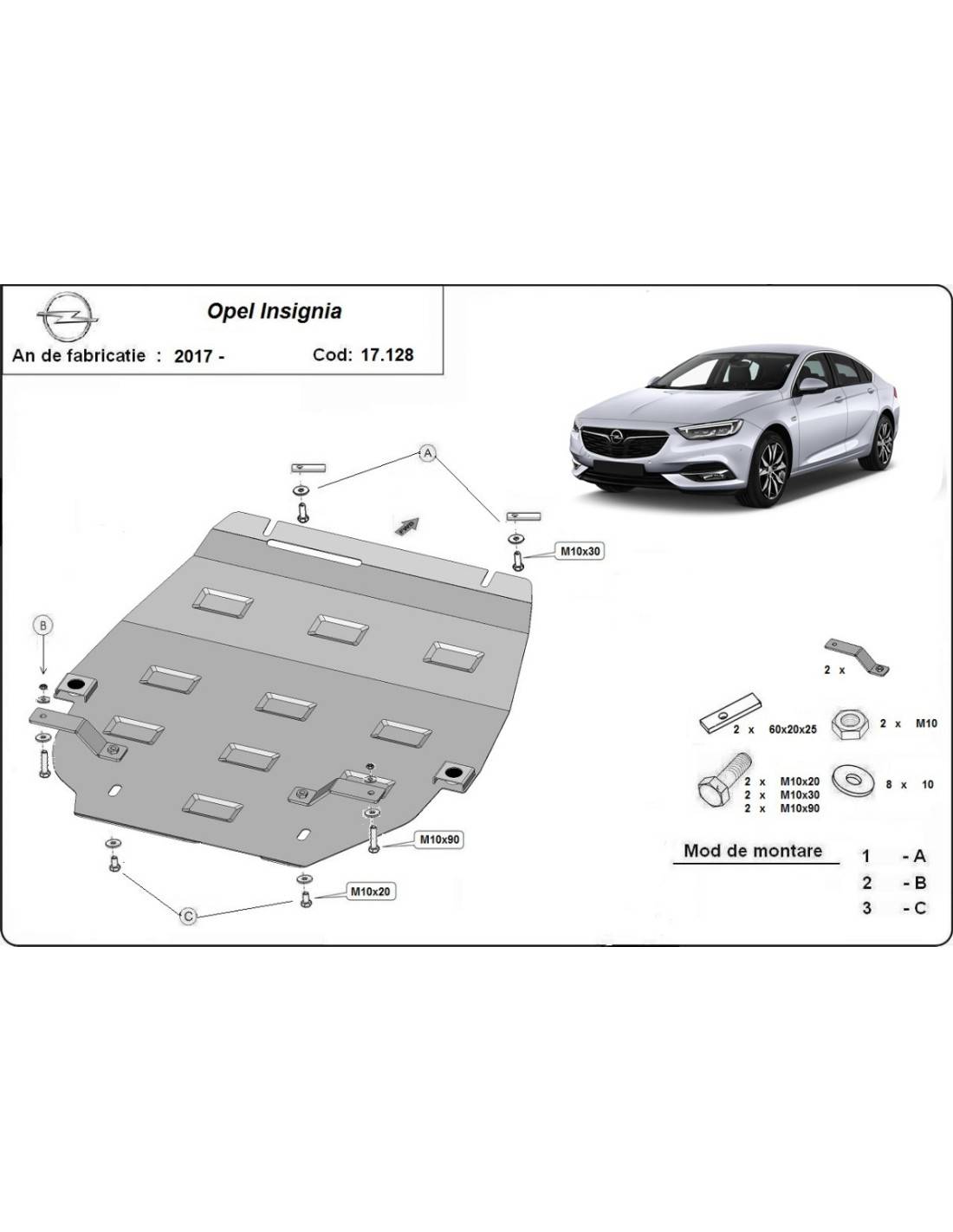 Cubre carter metalico Opel Insignia B "17.128" (Desde 2017 hasta 2022)