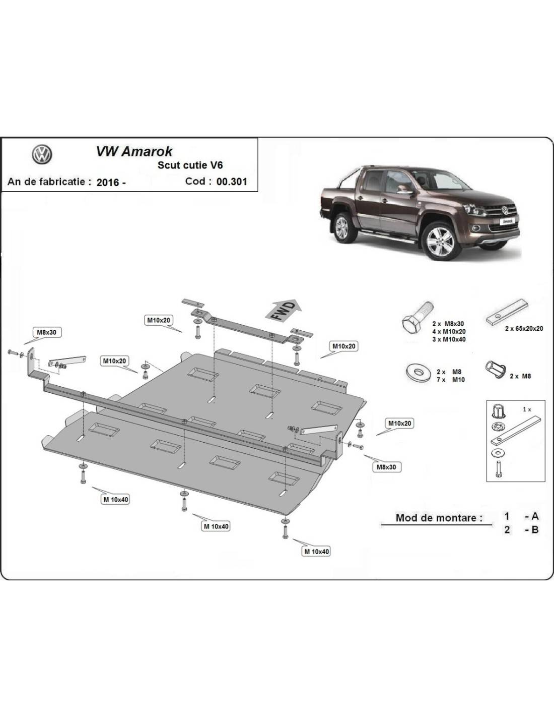 CubrecarterProtección de caja de cambios y diferencial Volkswagen Amarok - V6 automat "00.301"