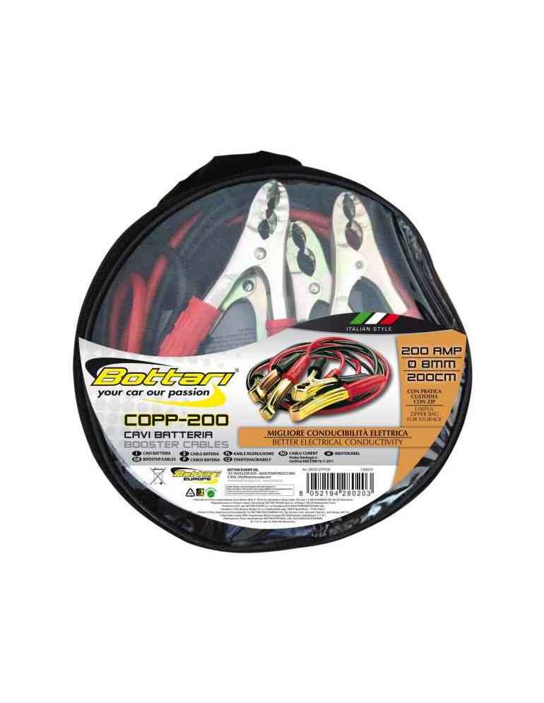 BOTTARIPinzas de batería de alta calidad, con aislamiento reforzado y capacidad de 200A, cable de 2m y diseño compacto.