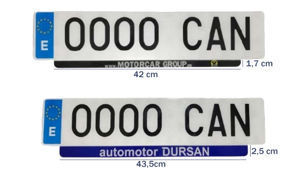 También ofrecemos la posibilidad de realizar las placas de matrícula con su publicidad incluida. (2 tamaños de publicidad disponibles)