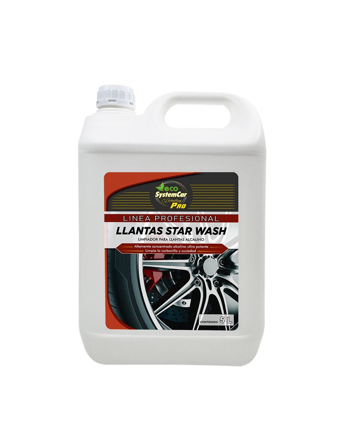 STAR WASH es un limpiador alcalino altamente concentrado, ideal para eliminar de forma rápida y eficaz la carbonilla, grasa y suciedad adherida a las llantas de aluminio. Su fórmula profesional penetra en la suciedad más incrustada, dejando las llantas completamente limpias y brillantes, sin dañar el material.