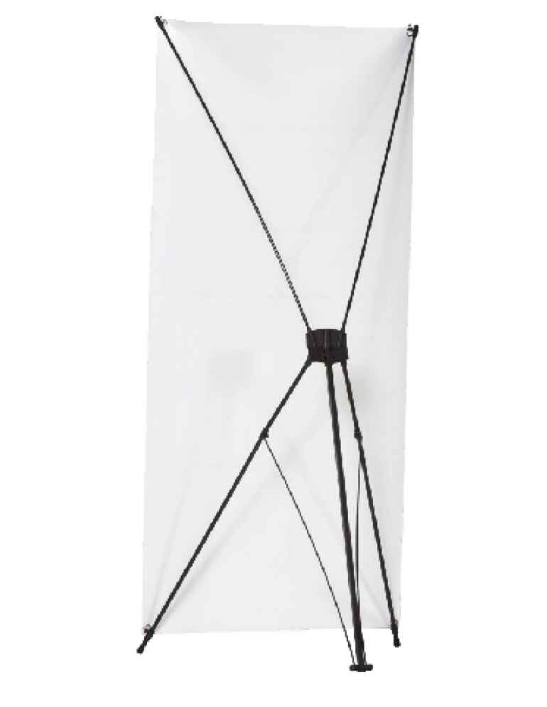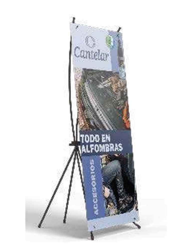 CantelarXBanner en PVC de 220 gr, personalizable a todo color. Disponible en 3 tamaños, ideal para eventos y exposiciones.