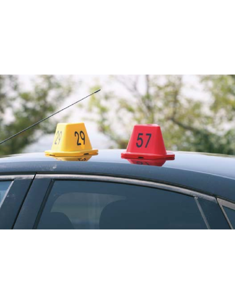 Pirámide magnética identificadora con fuerte fijación y base de caucho para evitar daños en la carrocería.